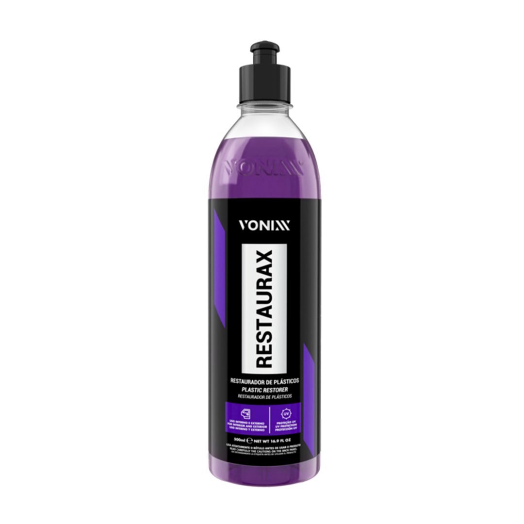 Restaurax renueva y restaura superficies plásticas, como parachoques, paneles y laterales de puertas. Su fórmula contiene polímeros especiales que además protegen las piezas contra los efectos del tiempo, evitando la degradación prematura del material.
